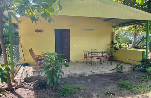 With AIRCONDITIONING! Sleeps 1-2 Guest on 1-Queen Bed! For those who enjoy really being ON the BEACH in front of beautiful Pacific Ocean, look no further! YES, cabina is on the beach with 24/7 ocean waves most people pay for that CD:). You'll step right out your door to surf,swim,snorkel,beach comb,walk/jog the coast or simply relax in 1 of many hammocks.Afternoon sunsets, even make a old fashion bomb fire,only please don't burn us out:).Nearby restaurants, grocery store,outdoor tours and more.Your Tropical Cabin has outside covered sunroof patio,BBQ,inside dining for 2, full kitchen,A/C,WiFi,TV,queen bed,restroom/shower.Location is off the beaten traffic flow for an Authentic Pura Vida Experience. We're a family neighborhood, means friendly, great location practicing your Spanish, safe & fun. Can walk Day/night anytime and be safe:)